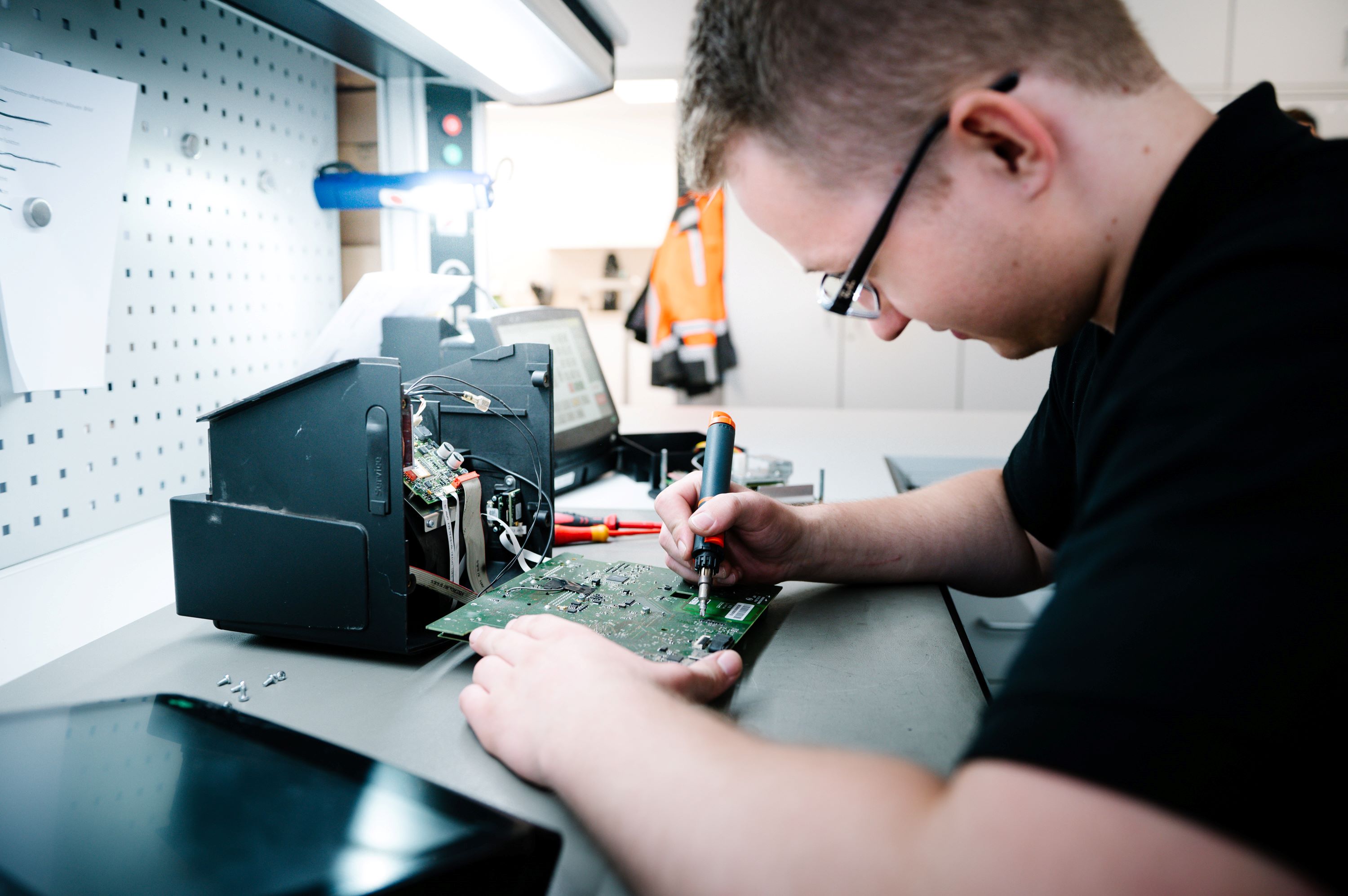 Aber natürlich hatten auch unsere technischen Auszubildenden die Gelegenheit, ihre Berufe ausführlich vorzustellen. Da die Veranstaltung direkt in unserer eigenen Ausbildungswerkstatt stattfand, konnten sie den Besucherinnen und Besuchern sogar ihren Ausbildungsplatz zeigen.